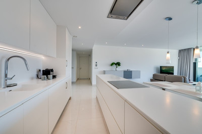 This brand new, modern apartment features a spacious open plan design with top quality finishes throughout. The bright and spacious living-dining room flows seamlessly into the fully equipped kitchen, ideal for both everyday living and entertaining guests. Enjoy a fantastic private corner terrace that extends your living space to the outdoors, accessible from the living room through double glazed doors. It is the perfect place to dine al fresco, relax or simply enjoy the Mediterranean sun.
