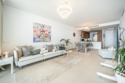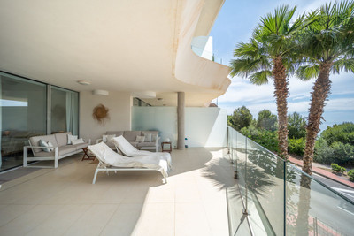 Amazing south facing apartment, located in the exclusive complex of Stupa Hills, with 2 bedrooms, 2 bathrooms, living-dining room, open plan kitchen fully furnished and equipped with electricial appliances, laundry area with washing machine and dryer, large terrace of 42m2 with sea views. Air conditioning hot and cold, video intercom, electric blinds in all bedrooms, domotic system, pre-installation alarm system, built-in wardrobes. Includes two parking spaces and one storage room.