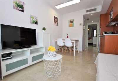 This exquisite one-bedroom apartment, situated a mere 200 meters from the pristine beach, presents an exceptional opportunity for both investors and those seeking a coastal retreat. Nestled within a well-maintained urbanization that permits short-term rentals, this property is ideal for generating rental income while enjoying the benefits of a vibrant seaside lifestyle. The apartment boasts a modern design, featuring an open-plan living area that seamlessly integrates the kitchen and lounge, creating a spacious and inviting atmosphere. Large windows flood the space with natural light, enhancing the overall ambiance and providing picturesque views of the surrounding area. The bedroom is generously sized, offering ample storage and comfort, while the bathroom is equipped with contemporary fixtures and finishes. Residents can take advantage of the urbanization's amenities, which may include a communal pool, landscaped gardens, and easy access to local shops and restaurants, making this apartment not only a perfect holiday home but also a lucrative investment opportunity in a sought-after location.