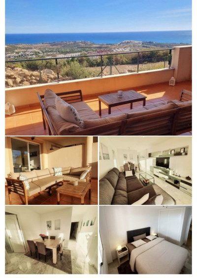 the apartmanet is located on the 1st floor and boasts a large terrace with panoramic views of the sea, mountains, and golf courses. Situated in the Doña Julia residential complex in Casares Costa, it is a 5-minute drive from the beautiful Casares beach, the Sabinillas commercial area, and the charming Puerto de la Duquesa. The picturesque town of Estepona and the Sotogrande urbanization are just 15 minutes away, the famous Marbella 25 minutes, Malaga airport 50 minutes, and Gibraltar airport 20 minutes. This apartment is surrounded by prestigious golf courses such as Finca Cortesin, Doña Julia Golf, Casares Costa Golf, and Valle Romano Golf. The property features a large 30m² terrace, marble floors, 3 bedrooms, 2 modern bathrooms, and is fully furnished. The property is very bright and secure. The complex is located in a 24-hour secure residence, with a shared pool and green spaces, all for a low co-ownership cost of €75/month. The apartment includes 2 underground parking spaces and a storage room."