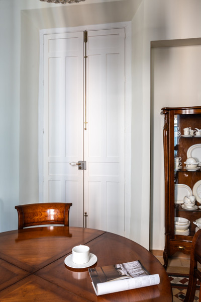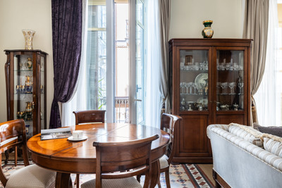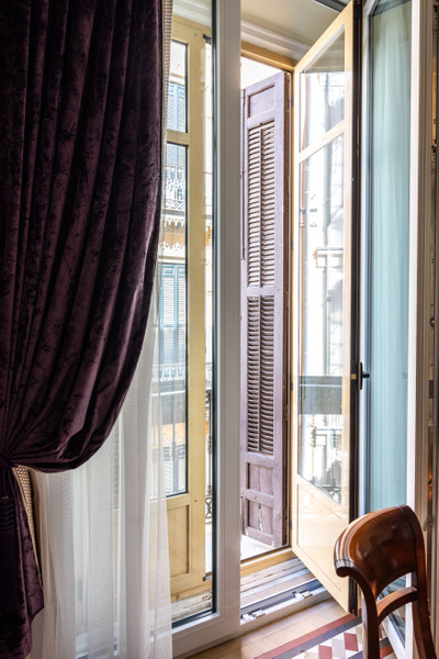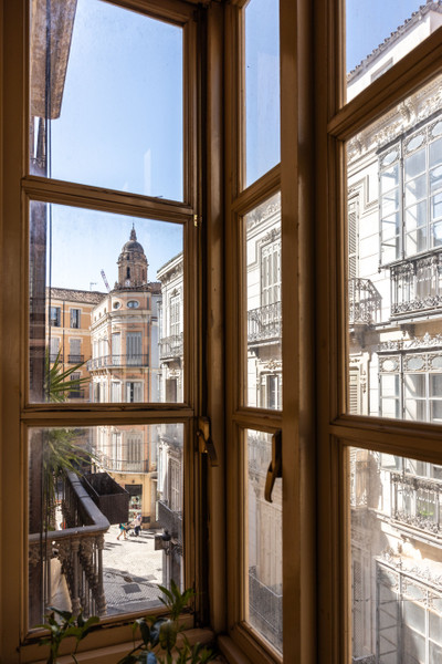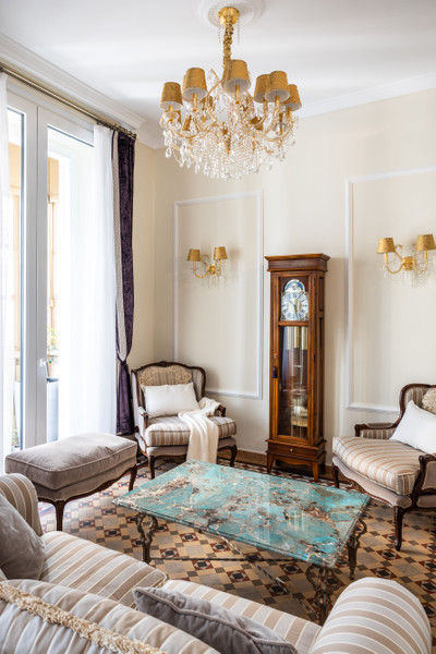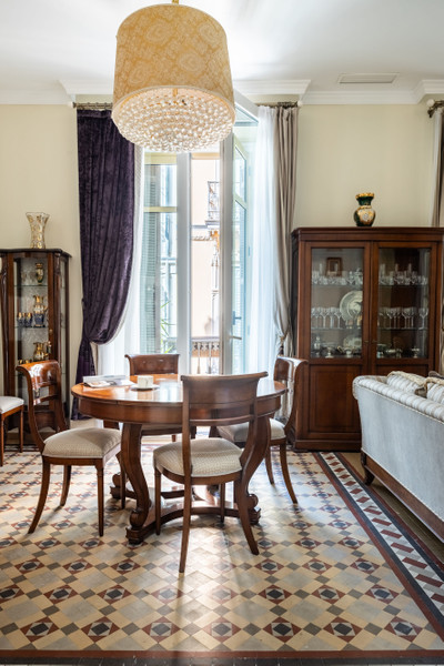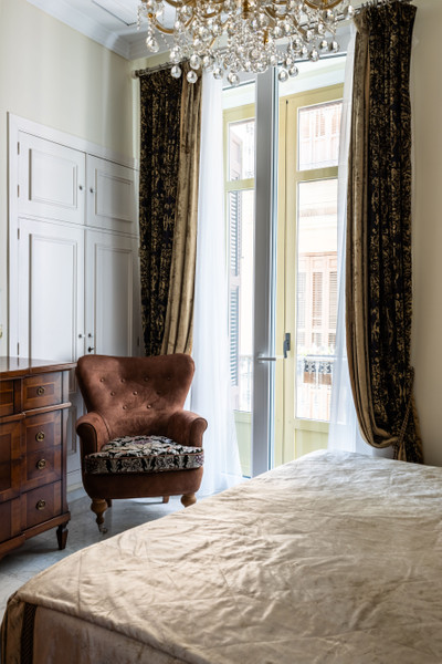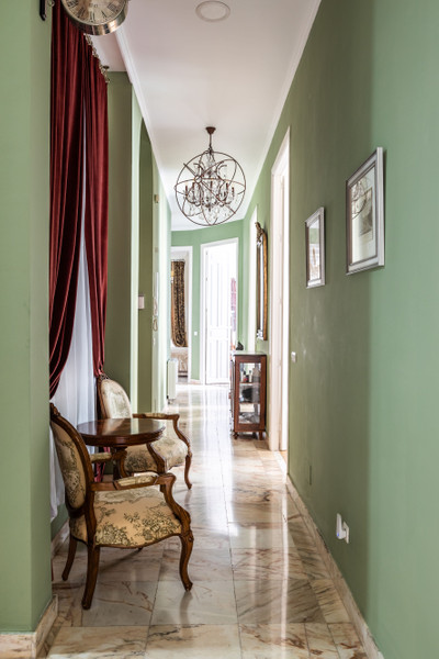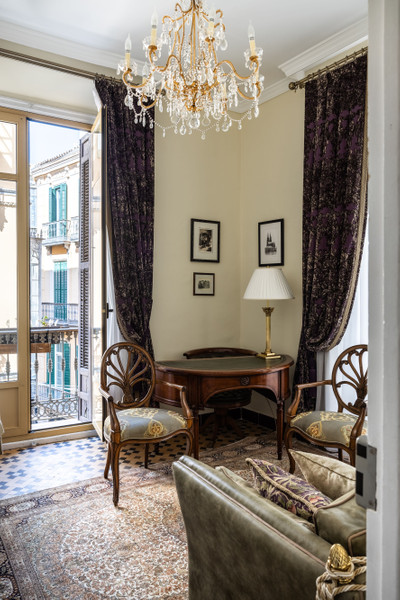 Welcome to one of the most elegant apartments for sale in the historic center. This beautiful early 20th-century building boasts graceful proportions, high ceilings, balconies, and bay windows overlooking the street. A true architectural gem now available for purchase. The apartment is located on the second floor of a building without an elevator. Upon entering, you will be impressed by the various doors and an elegant marble staircase. Inside the apartment, the theatricality of the decor stands out, featuring high ceilings, elegant drapery, green-toned walls, and stunning chandeliers, creating a captivating atmosphere at first glance. This is not an ordinary property, and its dramatic flair is a welcome feature. The 173 square meters of usable space are distributed through a long corridor into various rooms, all with street-facing balconies. The apartment occupies the entire floor and has a south-facing facade with two corners. The property includes 4 bedrooms, 3 bathrooms, a spacious living room with a dining area, a reading room, kitchen, and patio with its own access. One of the apartment’s highlights is the original hydraulic tile flooring, which features different colors and patterns throughout the rooms. It also retains the original wooden shutters and bay windows. A standout feature of this property is the natural light it receives through its 8 balconies and street-facing bay window. The fantastic main southern orientation, with one corner facing east and the other west, ensures sunlight throughout the day. The kitchen offers the possibility of expansion, and we have a project in place to maximize its potential. All these details make this wonderful apartment truly special and captivating at first sight.