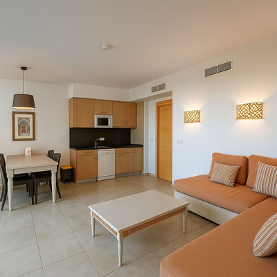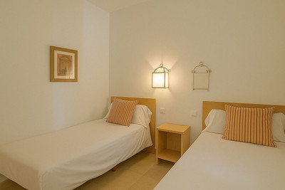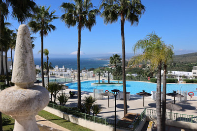 Nice and cosy apartment for sale in Manilva. The apartment has two bedrooms, two bathrooms, equipped kitchen and living room. It is situated in an authentic Andalusian holiday village, with two pools, a restaurant, bar and views to the street of Gibraltar. In the urbanisation you can find a space for children, a space to play football, basketball and handball. It is located 500m from the sea. A rental contract is in place. The complex is gated, providing security, which is an attractive feature for potential tenants and buyers.