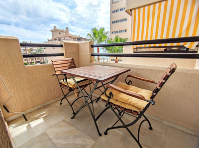 Luxury apartment located in the fronline beach complex Montemar Puerto in Torremolinos. This bright third floor apartment has hot and cold air-conditioning, well appointed appointed kitchen, bathroom and bedroom. The floors are fine quality marble. There is a taxi rank and a bust stop a few metres from the apartment. Close by there are supermarkets, restaurants and other places of entertainment. The noteworthy Benalmadena Marina is just a short step away.