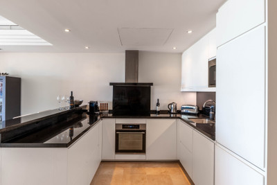 Spanning 192 sqm, the property features an open-plan living area flooded with natural light, complemented by floor-to-ceiling windows that frame tranquil garden views. High-end finishes and stylish furnishings create an inviting atmosphere, while the seamless connection to the expansive 42 sqm terrace makes indoor-outdoor living effortless.