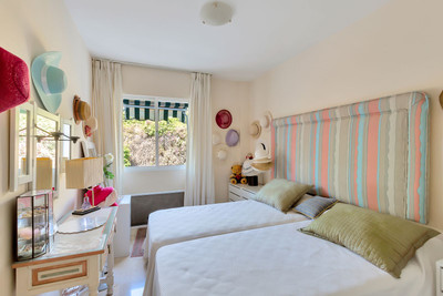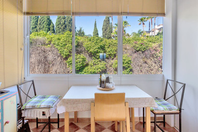 The community was built in 1982, this residential community provides spacious apartments with large balconies and this 3 bedroom apartment benefits from it's elevation giving incredible views across the valley of Marbella. Entering this home a spacious hallway provides access to a very large kitchen to the left. This includes an additional utility room and has large windows overlooking the back of the complex. To the other side is the living and dining room area. An area of substantial space which leads directly to the balcony. This is surely the focus of this property, with views that are absolutely mesmerising…..like a painting which changes with each day.