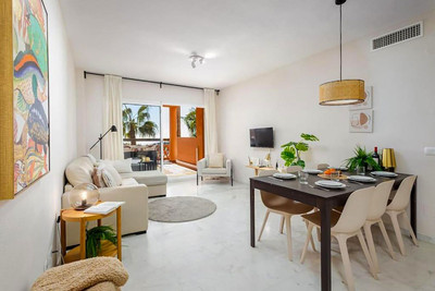 Fantastic apartment ready to move into in the well known urbanization la Reserva de Marbella. This south facing property with magnificent sea views from its large terrace consists of 2 spacious bedrooms, 2 bathrooms, fully fitted independent kitchen and living/dining room. It also includes a parking space and storage room. The condition of the property is fantastic, and it is sold with all furniture included. The property also has a valid tourist rental licence. Do not hesitate to ask for a viewing