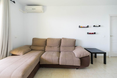 It has a spacious and bright living room, with large windows that allow natural light to flood the space and, at the same time, offer panoramic views of the ocean. The living room connects to a private terrace, ideal for relaxing at sunset or enjoying meals outdoors, while contemplating the views of the Mediterranean Sea.