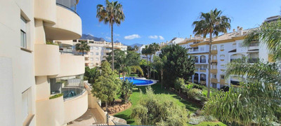 Apartment on the Golden Mile of Marbella. It is located in an exclusive complex with tropical gardens and community pool 500m from Casablanca Beach and Trocadero Playa. The urbanization is located 10 minutes walk from the center of Marbella and 10 minutes by car from Puerto Banús.