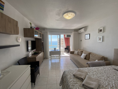 It is on the 9th floor with stunning sea views. It is less than 150 metres to the beach and the "Paseo", the street with many restaurants and bars that runs along the beach in Fuengirola.