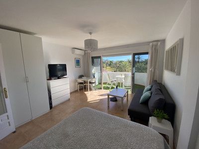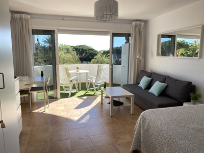 Nice studio located in a very sought after area within the Urbanization Marbesa, surrounded by the best beach of the Costa del Sol and only 5 minutes walking distance to the sand. The flat has a living-dining room, bedroom, bathroom and terrace overlooking the pool and gardens. Its privileged location makes it an excellent investment, with high rental demand all year round thanks to its proximity to supermarkets, the Elviria Shopping Centre, restaurants, beach bars, golf courses and tennis courts. The studio has a double bed and a sofa bed, ideal for enjoying life close to the beach with all amenities within easy reach.