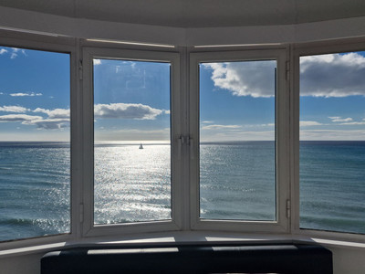 Discover an unbeatable beachfront location with this apartment in Riviera del Sol ( IN NEED OF A FULL RENOVATION ). Offering breathtaking panoramic sea views, this gem truly feels like you're living on a boat, with the ocean as your constant backdrop.