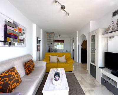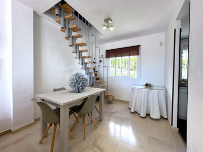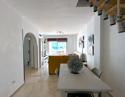 BEAUTIFUL DUPLEX APARTMENT IN CASARES COSTA, ONLY 10 MINUTES WALKING DISTANCE TO THE BEACH, WITH BEAUTIFUL SEA VIEWS. With an excellent location, only 5 minutes driving from Estepona and Sabinillas, where you will find all kind of shops, leisure facilities and the picturesque Puerto de la Duquesa. Close to well known golf courses, one of them being Finca Cortesin and Doña Julia. The south facing property enjoys natural light throughout the day. Distributed over two levels, it has been renovated, adding on the upper floor, a living room, a bedroom and a bathroom, which can be enjoyed as another independent flat. It offers two terraces, with frontal sea views. Within a quiet urbanisation, completely closed and very well maintained, with 2 swimming pools for adults, 2 for children and lovely garden areas. Includes private parking space outside. We recommend a visit!