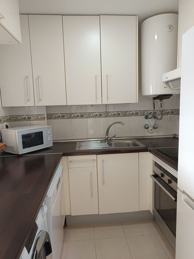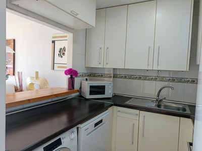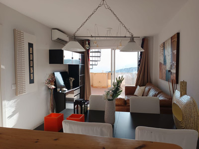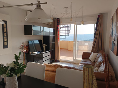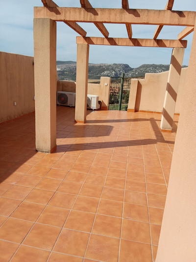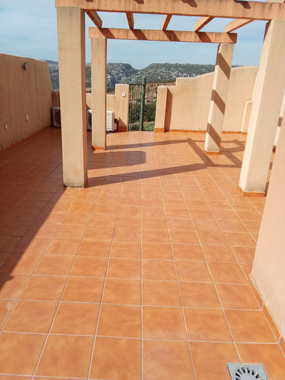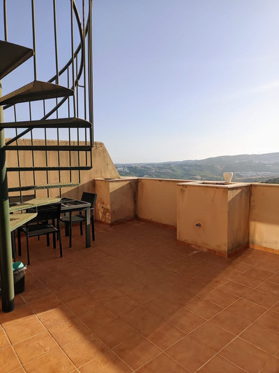 Penthouse only 5 minutes to the beach of Casares Costa in the golf area near Finca Cortesin with huge terrace and 2 doble bedrooms, one bathroom en suite and another one outside the bedrooms plus a very light and modern kitchen fully equipped. The urbanisation will have a comunity pool in the future and some people buy their own pool to put non the terrace, form th eterrace you have only lateral sea views and very nice views to the panoramic hillside.