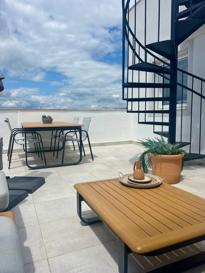 Discover this beautifully maintained 3-bedroom, 2-bathroom duplex penthouse in the sought-after urbanization Hacienda Casares, located just minutes from world-class golf courses, sandy beaches, and the picturesque village of Casares.