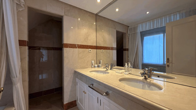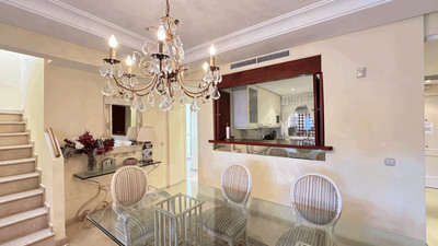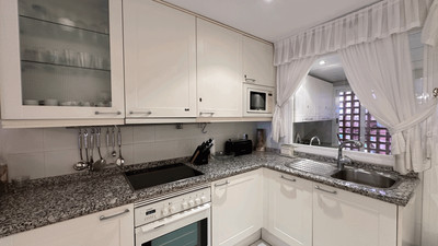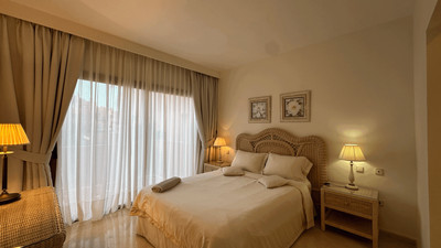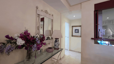 Further enhancing the appeal are desirable touches such as air conditioning, electric blinds, double glazing, Wi-Fi and Fibre optic internet, fitted wardrobes, and a walk-in closet. Security shutters, a security entrance, and a doorman add to the comprehensive security measures. The property is in excellent condition, making it an ideal choice for those seeking a luxurious yet practical home by the beach. Pets are permitted, and the property’s proximity to transport links ensures easy connectivity, completing its appeal as a distinguished residence in one of Estepona’s most sought-after locations.