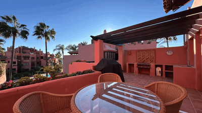 This exceptional duplex penthouse, located in Menara Beach within Estepona East, Malaga, epitomises luxurious living on the Costa del Sol. Gracefully positioned in a frontline beach setting, this property offers unrivalled views of the sea while being conveniently close to local amenities, shops, schools, and restaurants. The development benefits from 24-hour security, gated community access, and surveillance cameras, ensuring privacy and safety for its residents.