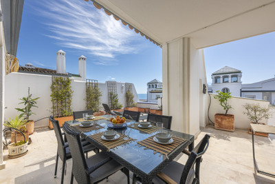 Located in the prestigious Dominion Beach area of Estepona East, this luxurious duplex penthouse offers a combination of elegant living and unbeatable convenience. Situated along the renowned New Golden Mile, the property enjoys a prime location, with direct access to the beach through beautifully landscaped communal gardens. Estepona Centre is just a short drive away, and the property benefits from excellent road connections, including the A-7 coast road, ensuring easy access to Marbella, Puerto Banús, and beyond. The area is well-served by international schools, making it a perfect location for families, while nearby golf courses, sports facilities, and supermarkets cater to various needs.