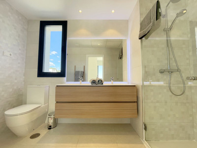 This spectacular duplex penthouse, located in an exclusive frontline golf development in Estepona, boasts a privileged south-facing orientation, ensuring abundant natural light throughout the day and breathtaking panoramic views of the sea and golf course from every room in the home.Just 5 minutes from the exclusive Alcazaba Lagoon and close to the new Estepona hospital, restaurants, supermarkets, and schools, this property offers a very convenient and well-connected location.On the main floor, the property features a modern, fully equipped kitchen that seamlessly integrates with the spacious living room, which opens directly onto a private terrace—perfect for enjoying the stunning surroundings. This level also includes two large bedrooms with built-in wardrobes, a full bathroom with double sinks and a walk-in shower, and a small laundry area.Upstairs, you’ll find the spacious master bedroom, complete with a walk-in wardrobe, en-suite bathroom with walk-in shower, and access to a private terrace with sea views—ideal for relaxing in complete privacy.