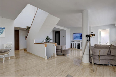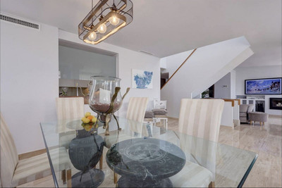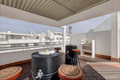 This rare gem on the market is an impeccably presented penthouse apartment, just a 5-minute drive from the picturesque La Cala de Mijas. Spanning three levels, the property welcomes you with an expansive living space that includes a lounge, dining area, separate kitchen, one bedroom, and a bathroom. The lounge features a cozy fireplace and opens onto a south-facing terrace. The abundance of natural light creates a bright and inviting atmosphere throughout the apartment.