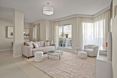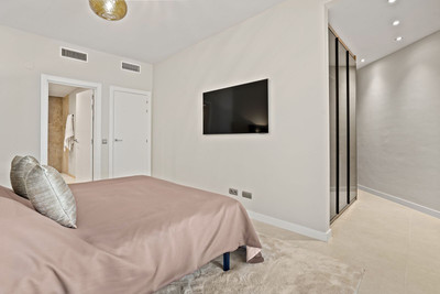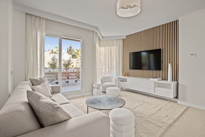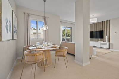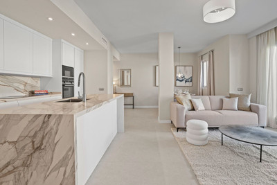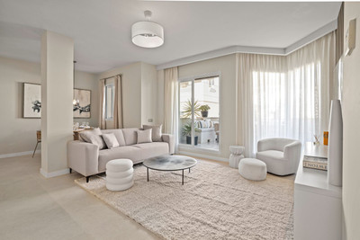 The perfect property for relaxed Marbella living! This penthouse was just fully renovated to a very high standard and is located in the popular Aloha area of Nueva Andalucia, with top restaurants, cafes and sports clubs all within easy walking distance. Set all on one level, it features spacious living space throughout with a beautiful open-plan modern kitchen, fully equipped with Siemens appliances, a luxurious living and dining area, 3 bedrooms, 3 bathrooms and a huge terrace surrounding the entire apartment. The master bedroom features a custom-built walk-in closet and a very spacious en-suit bathroom with a double stone sink and large walk-in shower.