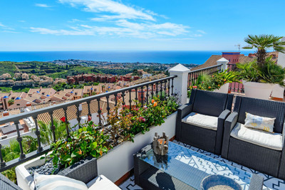 This impressive Penthouse boasts a modern open plan and new kitchen with Neff appliances and a convenient island, ideal to entertain. The living room has direct access to the magnificent terrace from two sides, with 3 expositions facing East, South and West, where you will enjoy views all across the Costa del Sol, from the Sierra Nevada's to the Bay of Marbella and Gibraltar. Perfect to savour your breakfast at the sun rises, then continues all during the day. While saving the best for spectacular sunset cocktails and a sublime dinner al fresco! And don't forget the terrace's hot tub jacuzzi to climax a perfect day on the Costa del Sol.