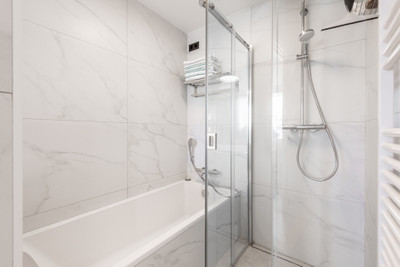 The property has four spacious bedrooms and three modern bathrooms, making it an ideal choice for families or those looking for a comfortable and stylish living space. The layout allows it to be used as one large 4 bedroom apartment or divided into 2 separate apartments with their own terrace and kitchen.