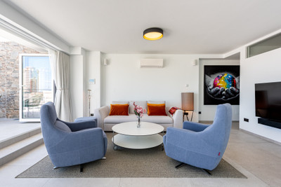 There are two private terraces, one facing the sea and the other facing the mountains, with partial sea views, mountain views and panoramic views of the city. This outdoor space is perfect for relaxing, entertaining or simply enjoying the stunning surroundings. The penthouse also comes with a private garage but this is in a separate building.