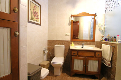 The first floor, with direct access to the house via stairs from the street, is distributed in a cozy living room, large kitchen with fireplace, toilet, two large bedrooms and a charming Andalusian patio that provides ventilation and natural light to the house.