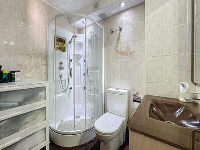 The two full bathrooms are equipped with hydro massage cabins that include therapy lights, providing a personal relaxation space where you can recharge after a long day. They are very spacious and modern.