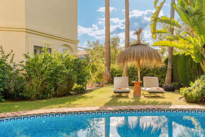Welcome to this exquisite semi-detached house with private swimming pool located in the peaceful community of La Quinta Hills, within the prestigious area of Benahavis.