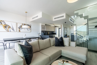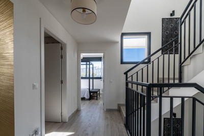 Beautiful four-bedroom semi-detached house located in the popular Bahía de las Rocas area of Manilva, offering a stunning south facing aspect and modern open plan living. Inside, the property is tastefully decorated with quality finishes and is designed for everyday living. One of the highlights of this home is the amazing panoramic view of the Mediterranean Sea, Gibraltar, and even the northern coast of Africa. It's also close to the beach, golf courses, schools, shops, restaurants, and the nearby towns and Marina's of Sotogrande and La Duquesa. The house is spread over four levels. The main floor has a bright living room and an open plan kitchen, both with sea views and access to a private patio and garden. Upstairs, the first floor includes a master bedroom with a terrace and sea views, two more bedrooms with built-in wardrobes, and two bathrooms, one of which is en-suite. At the top of the house, there’s a rooftop terrace with a jacuzzi and space to relax or entertain while enjoying the view. The basement is flexible and can be turned into a home gym, extra storage, or a playroom. Outside, there’s a private garden of around 118 square meters. The home is fully furnished and includes high-quality appliances and features. It’s move-in ready and perfect for anyone looking for a main home or a holiday residence by the sea. The gated community offers shared facilities including swimming pools, a paddle tennis court, and a children’s play area, making it ideal for families and anyone looking for a relaxed, easy lifestyle.