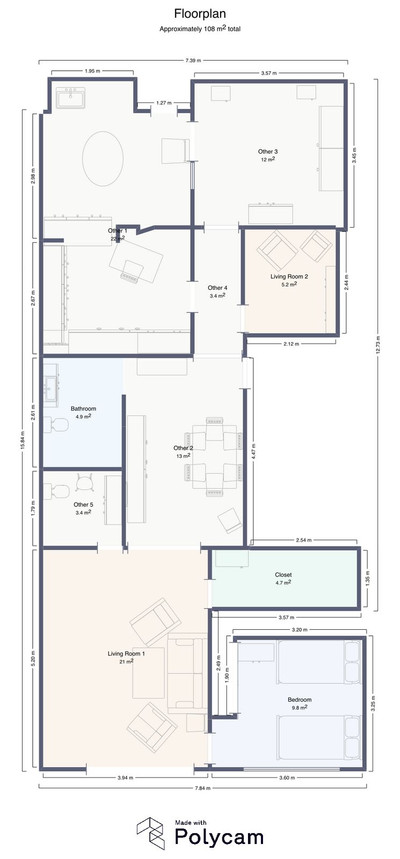 It is divided into two separate dwellings, each with approximately 117 square meters of floor space.