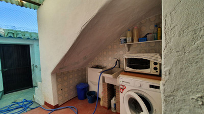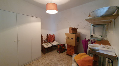 The property, which requires renovation, is currently distributed over two floors. On the ground floor, you will find two bedrooms, a spacious living room, a kitchen with a dining area, a full bathroom, and an interior patio that includes a utility area. From this patio, there is access to the top floor, which is an open-plan area offering multiple customisation options. One example is to create an independent apartment thanks to its direct access to the street, or alternatively, the space could be redistributed to add up to three additional bedrooms and another bathroom.