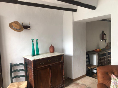 Recently renovated, the house has preserved its emblematic elements that give it a unique character. Its wide stone walls regulate the interior temperature, keeping it cool in summer and warm in winter. Wooden ceiling beams, wooden windows and lattice doors add a rustic and cozy touch. The two-story house is ready to be opened.