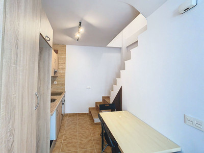 The charming-style house is located in the center of the town and consists of a ground floor that faces directly the street, with a cozy living room that includes an integrated kitchen and a toilet. Climbing an exposed staircase, we reach the first floor, where a large master bedroom with a spacious bathroom awaits you. Continuing upwards, you will find a loft with windows in the roof, which houses another master bedroom and an additional area that could easily be converted into a third bedroom.