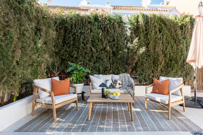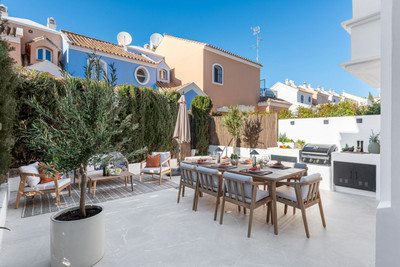This elegantly renovated townhouse offers four bedrooms (two on the first floor and two on the second floor) and three contemporary bathrooms, strategically located within walking distance to Puerto Banus, several shops and restaurants restaurants, and only 1km to the beach! All of this at an unbeatable price.